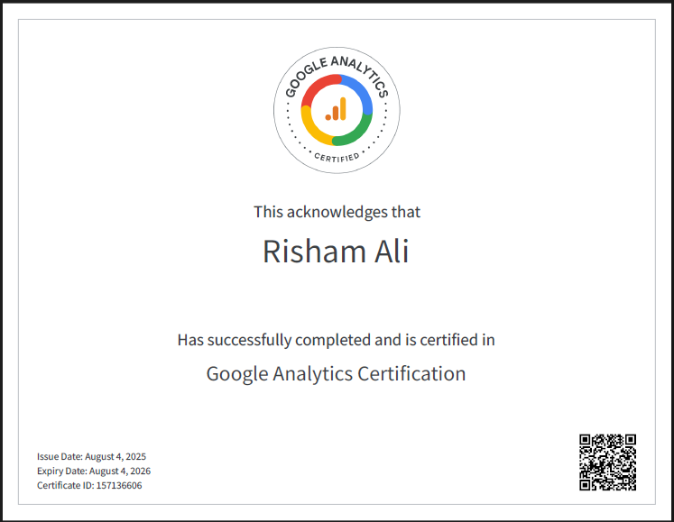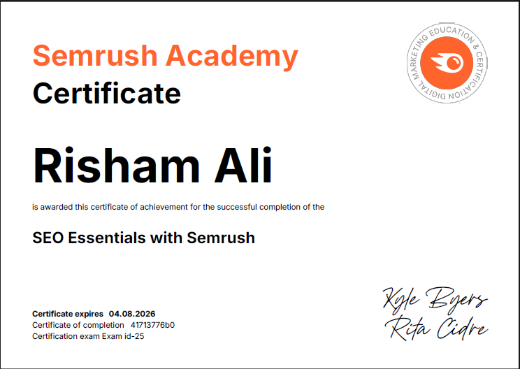 I am Risham Ali, a digital marketing strategist in Kannur, Kerala. I trained from Opentutor Digital Academy, Kannur for Web designing, SEO, SEM, SMM and so on.I help brands grow their digital presence and drive measurable success. My approach is data-focused and creative, ensuring every campaign not only looks great but also delivers real results.
